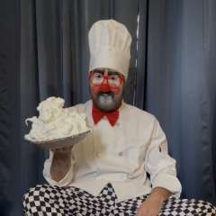Michiganpie1 was surprised by SeymourTheClown with a big sloppy cream pie to the face
